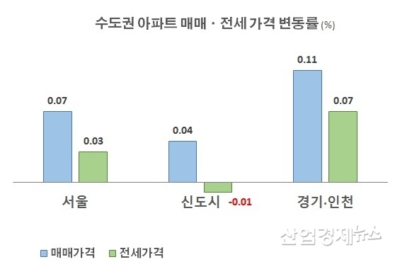 수도권 신도시 지역의 전세값이 하락하는 모습을 보였지만, 수도권에서도 서울과 경기인천 지역은 아직은 증가세가 꺾이지 않았다.