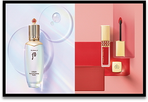 용기 디자인 역시 세련된 스퀘어 타입으로, 신라시대 금관을 모티브로 한 장식과 브랜드의 심볼인 연꽃 문양을 캡부분에 음각으로 새긴 디테일이 ‘후’의 독보적인 아이덴티티와 우아함을 한층 높여준다.