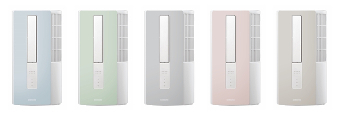 삼성 윈도우 핏은 실내 인테리어와 조화를 이룰 수 있도록 그린ㆍ블루ㆍ베이지ㆍ그레이ㆍ핑크 등 5가지 비스포크 색상으로 선보이며, 필요 시 패널 교체도 가능하다.