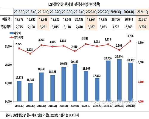 또 생활용품(HDB, Home Care & Daily Beauty)사업은 올 1분기 매출 5207억, 영업이익 662억 원을 달성해 전년 동기대비 8.6%, 1.4%씩 증가했다.