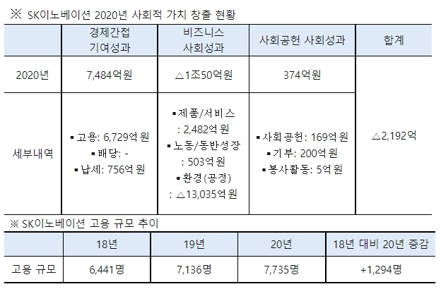 3일 SK이노베이션은 2020년 한해 동안 회사가 창출한 사회적 가치(SV; Social Value)를 측정한 결과를 발표했다. 2020년에는 2019년 기록한 1,717억원보다 3,908억원 줄어든 마이너스 2,192억원을 시현했다고 밝혔다.