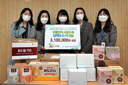이 날 본그룹은 목소리 재능 기부를 통한 녹음 음원 외에도 동화책 20권, 사운드기계 담뿍이, 배를 든든하게 채울 수 있는 자사제품으로 구성된 7만원 상당의 본드림 키트 등을 전달했다.