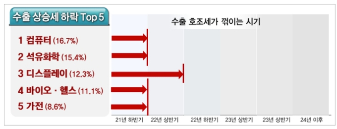 ■ 컴퓨터, 석유화학, 디스플레이, 바이오·헬스, 가전의 수출 호조세는 오래 못 갈수도