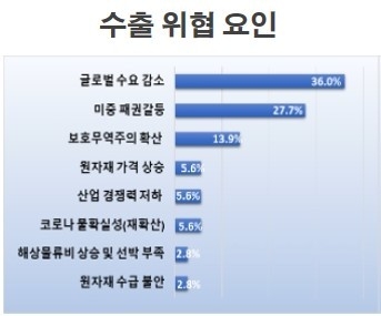■ 국내 수출 산업에 가장 큰 위협요인은 글로벌 수요 감소(36.0%)