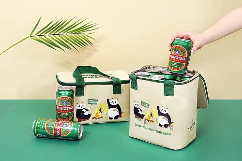 이번 쿨러백은 텐트를 치고, 칭따오 라거와 함께 캠프 파이어를 즐기는 칭따오 팬더 캐릭터의 귀여운 모습이 가방 전면에 프린트 돼 있는 점이 특징이다.