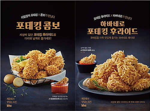 먼저 bhc치킨은 지난 1일 전국 매장을 통해 ‘포테킹 콤보’, ‘하바네로 포테킹 후라이드’ 2종을 동시에 선보였다.
