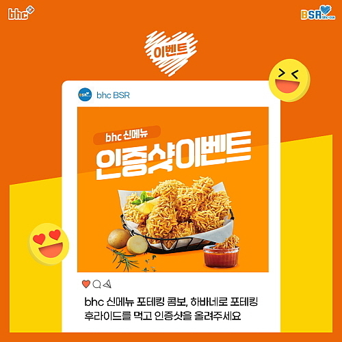 여기서 그치지 않고 bhc치킨은 BSR과 함께 신메뉴 ‘포테킹 콤보’와 ‘하바네로 포테킹 후라이드’ 출시 기념 인증샷 이벤트도 지난 14일 선보였다.