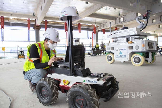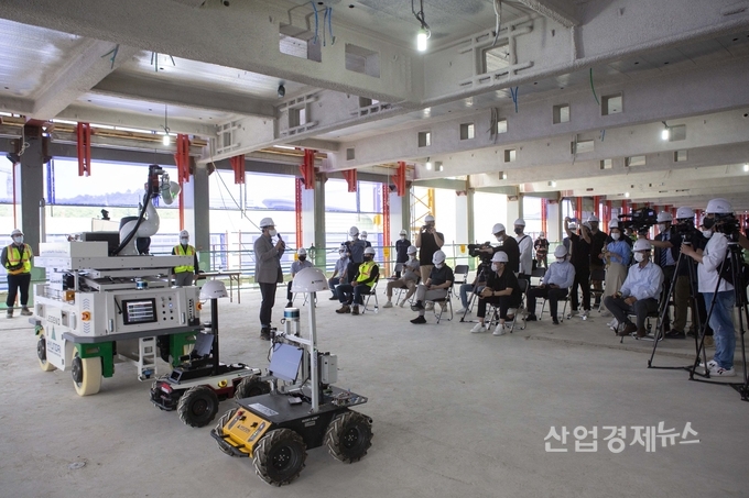 [엔트로피타임즈 최기훈 기자] 현대건설이 22일 경기도 성남시 소재 ‘현대중공업 글로벌R&D센터’ 현장에서 건설로보틱스 기술 시연회를 선보였다.