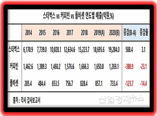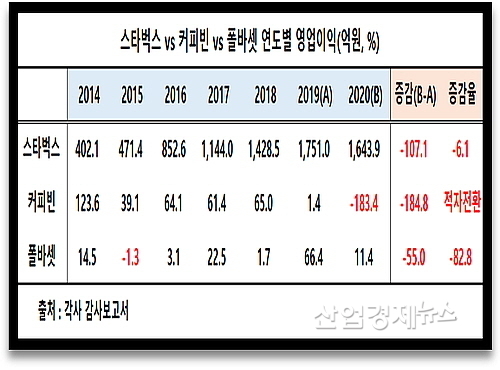 영업이익 감소율, 스타벅스 6.1%, 폴바셋 82.8%↑...커피빈은 영업이익 적자로 반전