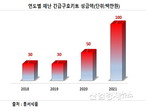 이로써 동서식품은 지난 2018년부터 펼쳐온 재난재해 대비용 긴급구호키트 기부 활동을 올해도 이어가게 된데다 지난해 성금 5천만 원 대비 100%나 증액 기부해 잔잔한 울림을 준다는 평가가 나온다.