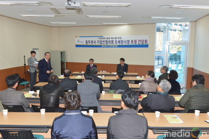 (미디어온) 동두천시는 관내 기업애로 해소를 목적으로 지난 15일에 축산브랜드肉타운 2층 세미나실에서 동두천시기업인협의회와 간담회를 실시했다고 전했다. 이날 간담회에는 오세창 동두천시장과 동두천시기업인협의회 회장 및 임원을 비롯한 30여명이 참석했다.