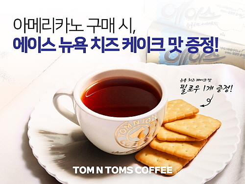 매장에서 아메리카노 1잔을 구매하면, 해태제과의 인기 상품 ‘에이스 뉴욕치즈케이크맛’ 1봉지(6개입)를 증정하는 내용이다.