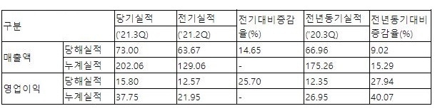 한 분기 전과 비교해도 매출은 63조원에서 10조원이 증가한 14.7% 증가율을 기록했고, 영업이익은 12.6조원에서 3.2조원이 증가한 25.7% 증가율을 기록했다.