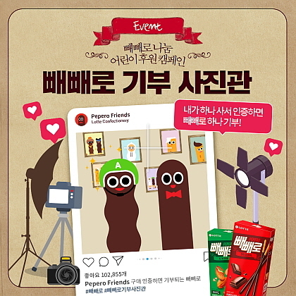 먼저 소비자 참여형 기부 이벤트인 ‘빼빼로 기부 사진관’은 소비자가 빼빼로 관련 사진, 영상을 게재하면 그 게시물의 수만큼 롯데제과가 아동 관련 복지 단체에 제품을 기부하는 내용으로, 관련 해시태그와 함께 인스타그램에 게시물을 업로드하면 참여가 가능하다.