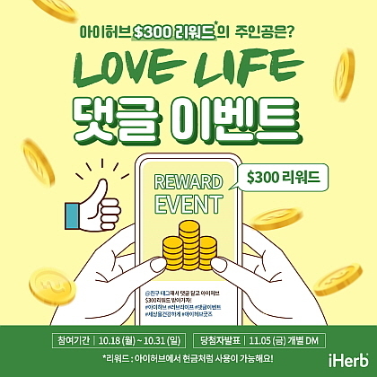 세계 최대 웰니스 이커머스 기업 아이허브(iHerb)가 10월 18일부터 2주간 공식 인스타그램에서 최대 300달러 리워드가 제공되는 SNS 댓글 이벤트를 진행중이다.