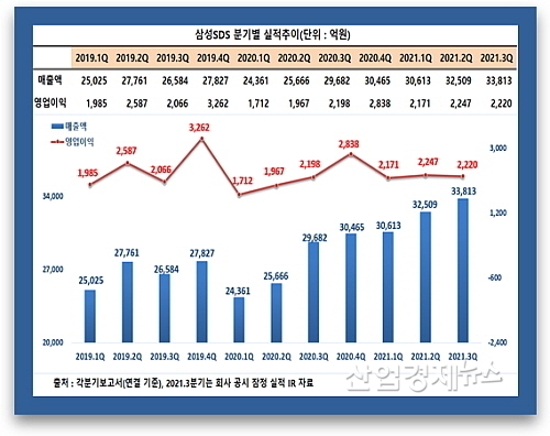 삼성SDS가 최근 공시한 잠정영업실적(IR자료)에 따르면 연결재무제표 기준 3분기 매출은 약 3조3813억 원으로 지난해 3분기 2조9682억 대비 4131억이 늘어 13.9%가량 성장했다.