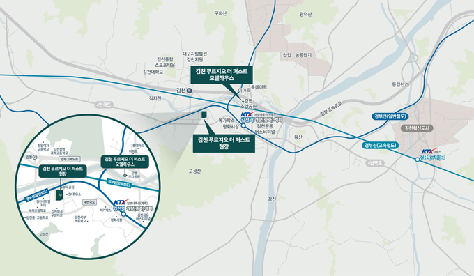 ‘김천 푸르지오 더 퍼스트’는 KTX 김천역(예정)과 김천구미역 2개소의 고속철도를 이용할 수 있고, 기존 경부선 김천역, 경부고속도로 김천 IC등이 위치해 김천을 비롯한 광역으로의 이동이 편리하다.