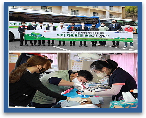 매월 1회씩 장애인 단체 및 치과 의료 취약 지역에 직접 찾아가 무료 치과 진료와 구강 보건교육 등 다양한 행사를 진행하여 지역 주민들에게 좋은 반응을 얻고 있다.