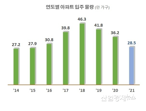 부동산114에 따르면 올해 전국에 공급된 아파트는 28.5만 가구로 조사됐다. 이러한 규모는 2014년의 27.2만 가구와 2015년의 27.9만 가구와 비슷한 수준이다.
