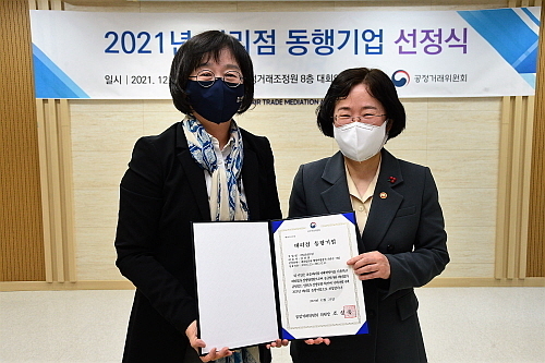 ‘대리점 동행기업’이란 대리점분야 상생 우수기업을 선정하고, 대리점분야 공정거래협약 체결을 권장해 대리점과의 상생문화 확산을 도모하기 위해 공정위에서 올해 처음 도입한 제도로, 매일유업과 대상㈜, 엘지전자㈜, ㈜이랜드월드 등 4개 기업이 선정됐다.