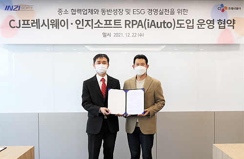 CJ프레시웨이는 ESG 경영 일환으로 인지소프트의 RPA 솔루션 ‘iAuto’를 통해 중소 협력사의 식자재 유통 업무 효율을 높여 동반성장을 꾀한다는 계획이다.