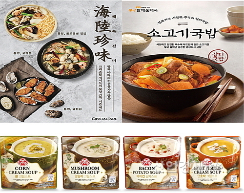 먼저 ‘상온 파우치 스프’는 신선한 원재료에 부드러운 크림을 더해 레스토랑에서 먹던 진한 스프 맛을 구현한 제품으로, ▲옥수수를 굵게 갈아 넣은 ‘콘 크림스프’ ▲버섯과 크림을 듬뿍 넣어 풍미를 더한 ‘양송이 크림스프’ ▲베이컨과 감자를 통으로 넣어 식감을 살린 ‘베이컨 감자스프’ ▲곱게 간 단호박과 크림이 어우러진 ‘단호박 크림스프’ 등으로 구성됐다.