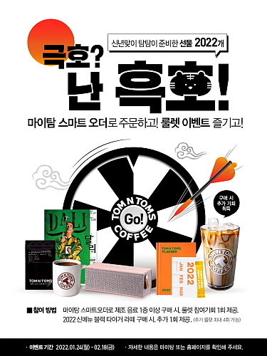 탐앤탐스 관계자는 “2022년 설날을 맞아, 더 유쾌하고 즐겁게 한 해를 시작하시길 바라는 마음으로 2022분 한정으로 '꽝 없는' 당첨 룰렛 이벤트를 준비했다”며 “앞으로도 마이탐 앱을 통해 더욱 재밌고 풍성한 이벤트를 선보이도록 하겠다”고 전했다.