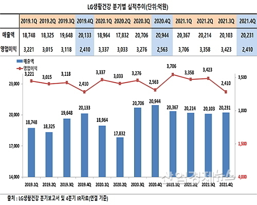 그나마 연간 실적으로는 연결 매출 8조915억 원, 영업이익 1조2896억 원을 시현, 전년대비 매출은 3.1%, 영업이익은 5.6% 증가한 호 실적을 거둬 코로나19 이전 수준을 뛰어 넘는 사상최대의 실적을 갱신한 점은 높이 살만하다는 것이 회사 측 자체평가다.