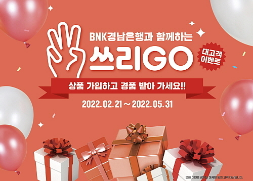 마케팅추진부 최명희 부장은 “‘쓰리GO!!! 대고객 이벤트에는 고객들이 금융상품에 신규로 가입해줘서 반갑고 거래해줘서 감사하다는 뜻이 담겼다. BNK경남은행 금융상품 이용과 보내준 성원에 보답하고자 푸짐한 경품을 마련했다. 많은 고객과 지역민들이 참여해 경품 당첨 행운을 누렸으면 한다”고 말했다.