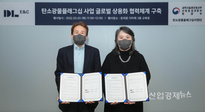 DL이앤씨는 3일 종로구 평동 D타워 돈의문 사옥에서 한국지질자원연구원 탄소광물플래그십 사업단과 '탄소광물화 원천기술 글로벌 상용화 협력체계 구축'을 위한 업무협약을 체결했다. 양측은 CCUS 연구개발 성과물의 상용화를 통해서 신사업 모델을 개발할 계획이다.