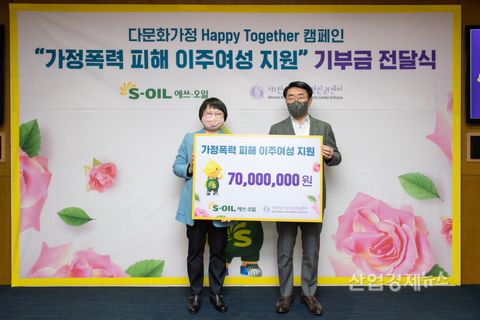 [엔트로피타임즈 강민구 기자] S-OIL(대표 : 후세인 알 카타니)은 세계 여성의 날을 맞아 7일 서울 마포구 공덕동 본사에서 한국이주여성인권센터(대표:허오영숙)에 가정폭력 피해 이주 여성을 돕기 위한 후원금 7천만원을 전달했다.