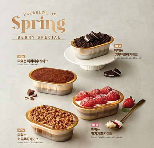 이외에도 커피 쿠키 크럼블이 올라간 ‘떠먹는 커피쿠키 케이크’와 블랙 쿠키가 콕콕 박힌 달콤한 크림에 쿠키 토핑이 잔뜩 얹어진 ‘떠먹는 쿠키앤크림 케이크’는 씹는 맛과 극강의 달콤함을 선사하며 선물용, 간식용으로 2030 간편족 사이에서 인기몰이 중이라고 덧붙였다.