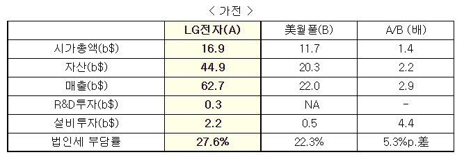 2021년 매출은 글로벌 경쟁사가 한국기업의 2.2배, 자산은 1.3배였다. 반도체와 가전에서 글로벌 1위 기업인 삼성전자와 LG전자를 제외할 경우 그 격차는 더욱 벌어져서, 매출은 3배, 자산은 1.8배에 달했다.