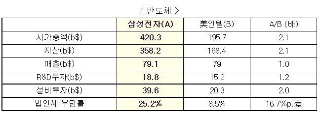 이번 조사를 실시한 전경련의 유환익 산업본부장은 “7대 수출 주력업종의 한국 대표기업들도 글로벌 경쟁사들과 비교하면 매출·시총 규모가 1/2~1/3 수준에 불과한데, 稅부담은 오히려 한국기업이 월등히 높았다”면서,