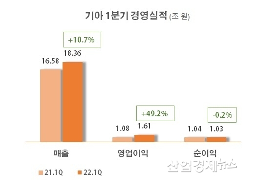 기아는 올해 1분기에, 매출액 18조 3572억원, 영업이익 1조 6065억원, 당기순이익 1조 326억원을 기록했다. 매출은 지난해 1분기보다 10.7% 늘었고, 영업이익은 49.2%나 증가했으며 당기순이익은 0.2% 하락했다.