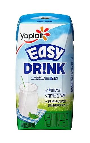 ‘요플레 이지드링크’는 떠먹는 발효유의 대명사인 요플레에서 국내 최초로 출시하는 실온 보관이 가능한 드링킹 요거트로, 100도의 고온에서 65초 이상 살균 처리한 후 빛과 공기를 차단하는 멸균팩에 포장하여 일반 냉장 요거트 제품에 비해 유통기한이 길고 실온에서도 신선하게 보관이 가능하다.
