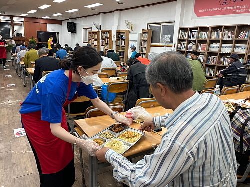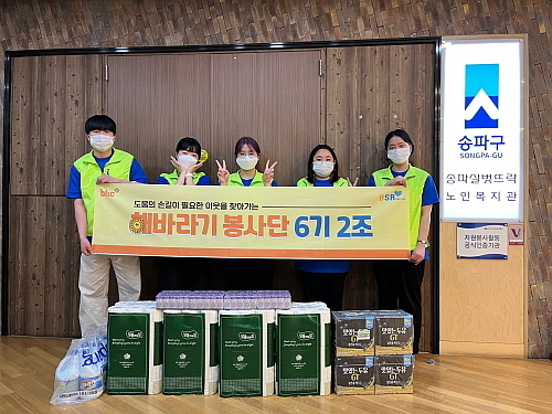 지난 3일 서울 중구에 위치한 ‘참좋은친구들’ 방문해 취약계층 60여 명 대상 무료 급식 봉사 에 이어 8일에는 서울 송파구 소재 ‘송파실벗뜨락 구립 노인복지관’을 방문해 말벗·실내 환경 정화 활동을 잇따라 전개한 것.
