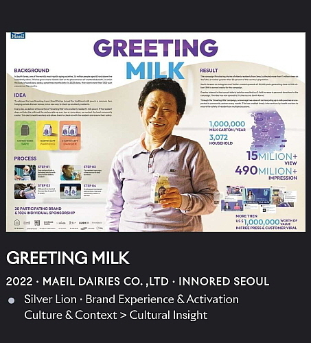 즉, 우유를 통해 독거노인에게 안부를 전한다는 발상과 캠페인을 통해 일반 고객의 기부참여를 이끌었다는 점이 이번 수상의 원동력으로 작용했다는 평이다.