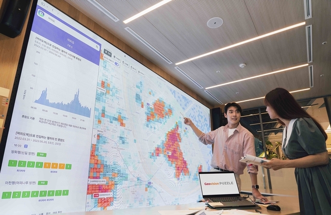 ‘지오비전 퍼즐’은 ▲지도를 기반으로 백화점, 지하철 등 주요 지역의 실시간 혼잡도를 한 눈에 볼 수 있는 ‘지도 뷰’와 ▲기지국 기반의 위치 데이터를 활용해 특정 지역의 유동인구, 지하철 혼잡도, 쇼핑 및 여가 장소 혼잡도, 국내 여행 인기 방문지, 주거 생활 분석 정보, 공유 킥보드 이용 데이터 등을 제공하는 ‘데이터 카탈로그’로 구성되어 있다.