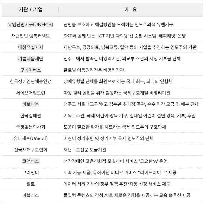 SKT는 올해 하반기에 사회문제 해결 및 사회적 가치 창출을 위해 홍보가 필요한 비영리기관, 사회적기업 및 사회 혁신 스타트업 등 지원 대상을 16개 기관·기업으로 확대해 서비스를 제공할 예정이다.