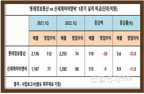 지난해 상반기까지만 해도 매출 증가율에선 롯데정보통신이, 영업이익 증가율에선 신세계아이앤씨(I&C)가 상대방보다 더 나은 성적표를 만들며 일진일퇴의 명승부를 펼쳤지만,