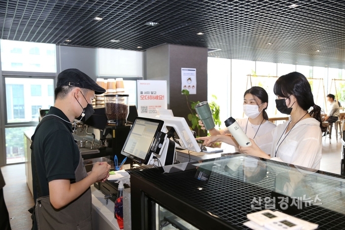 또 사내 카페에서는 텀블러를 이용해 음료를 구입하면 일정 금액을 할인해주는 제도를 상시화했다. 여기에 개인 컵 사용 인증샷 이벤트 등 다양한 홍보 활동을 통해 직원의 자발적인 재활용 컵 사용을 유도했다.