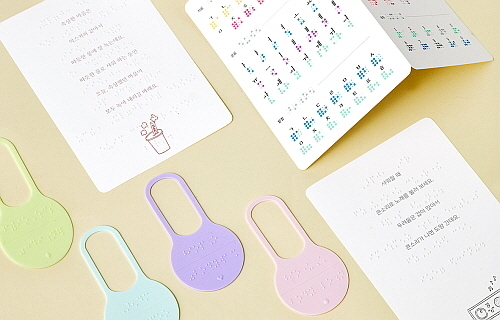 해당 제품은 실리콘 재질의 점자 태그 총 4종과 엽서 2종, 점자 일람표로 구성했다. 태그에는 각각 바디워시·바디로션·샴푸·컨디셔너를 뜻하는 점자를 한글과 영어로 표기했다.