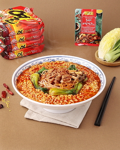 최근엔 매콤한 열라면에 강렬한 마라맛을 더하는 일명 ‘열내지마라’ 레시피가 입소문을 타고 있다. 물에 열라면 분말스프 절반과 ‘이금기 훠궈 마라탕소스’ 두 스푼을 넣고 끓인 뒤, 면을 넣고 2분간 끓이다가 각종 야채와 미리 볶아둔 소고기를 넣고 2분 더 끓이면 된다.