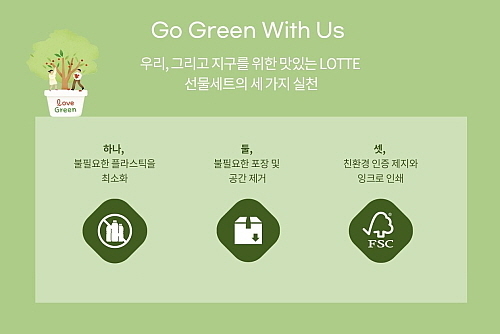 이를 통해 롯데제과는 약 100여 톤의 플라스틱 사용량을 줄인 것으로 전해진다. 특히 이번 추석에는 ECO 선물세트 쇼핑백에 일부 사용되던 부직포 소재를 종이로 전량 대체해 100% 종이 쇼핑백을 제공한다.