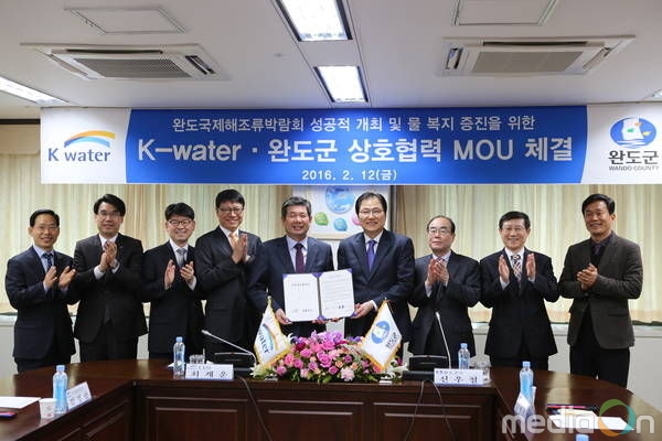 (미디어온) 완도군은 K-water와 지난 12일 대전K-water 본사에서 『2017 완도국제해조류박람회 성공적 개최 및 완도군 물 복지 증진을 위한 업무협약』을 체결했다고 전했다.