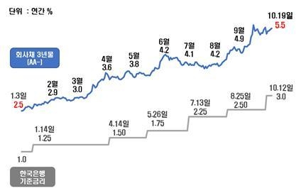 회사채 3년물(AA- 등급 기준) 금리 추이