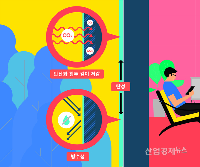 장수명 주택을 위한 핵심 기술인 콘크리트 탄산화 저항성 기능도 있다. 콘크리트 탄산화 현상은 콘크리트 내부로 침투한 이산화탄소가 철근의 부식을 유발하는 것이다. 부식된 철근은 부피가 팽창하게 되고 이로 인해 콘크리트 외벽 균열이 발생하면서 건축물의 내구성과 강도가 급속히 저하된다.