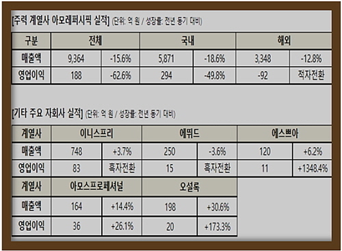 그렇다면 아모레퍼시픽을 포함한 주요 자회사들 실적은 어떠했을까?