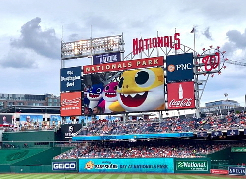 메이저리그에 등판한 한국 캐릭터가 있다. ‘더핑크퐁컴퍼니가 미국 프로야구 메이저리그(MLB) 워싱턴 내셔널스와 '아기상어의 날' 스페셜 경기를 ‘내셔널스 파크’에서 7월 개최했다. 핑크퐁 아기상어는 국내 캐릭터 최초로 미국 MLB 구장에 초청돼 경기 시작부터 끝까지 주인공으로 활약했다.